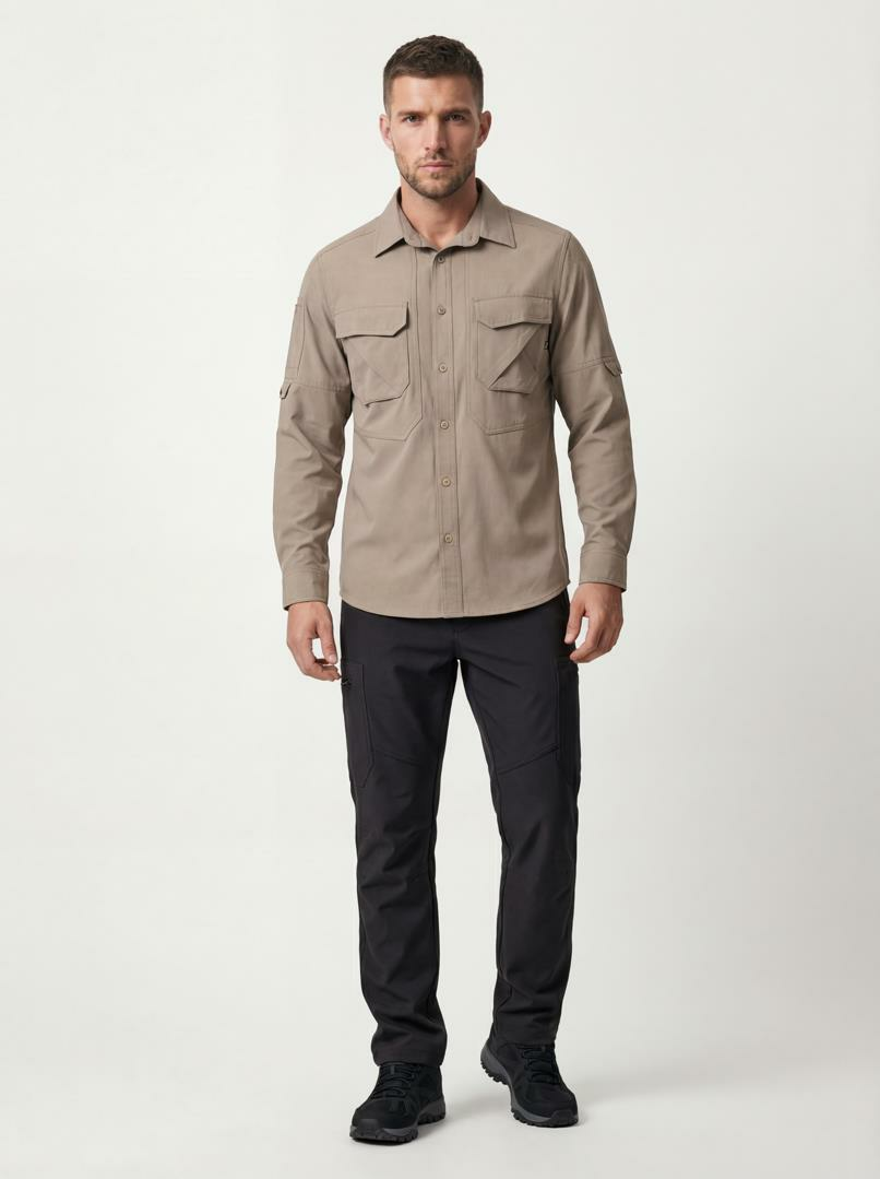 %85 PES ve %15 Lycra karışımıyla üretilen kumaşı, su itici ve nefes alabilen özelliklere sahiptir. Sırt havalandırma detayı ile sıcak havalarda ferah ve konforlu kalırsın. Kapaklı göğüs cepleri ve katlanabilir kol özelliği ile pratik kullanım sunar. Ayrıca, sağ kolundaki kalemlik cebi ile doğada işlevselliğini arttır.
